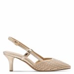 Stylowe czółenka z odkrytą piętą marki MARCO TOZZI to idealna propozycja dla kobiet, które cenią elegancję z nutą nowoczesnego blasku. Klasyczne złoto w połączeniu z subtelnymi czarnymi kryształkami tworzy efektowny, a zarazem ponadczasowy styl – perfekcyjny na wyjątkowe okazje, do pracy czy wieczorne wyjścia.